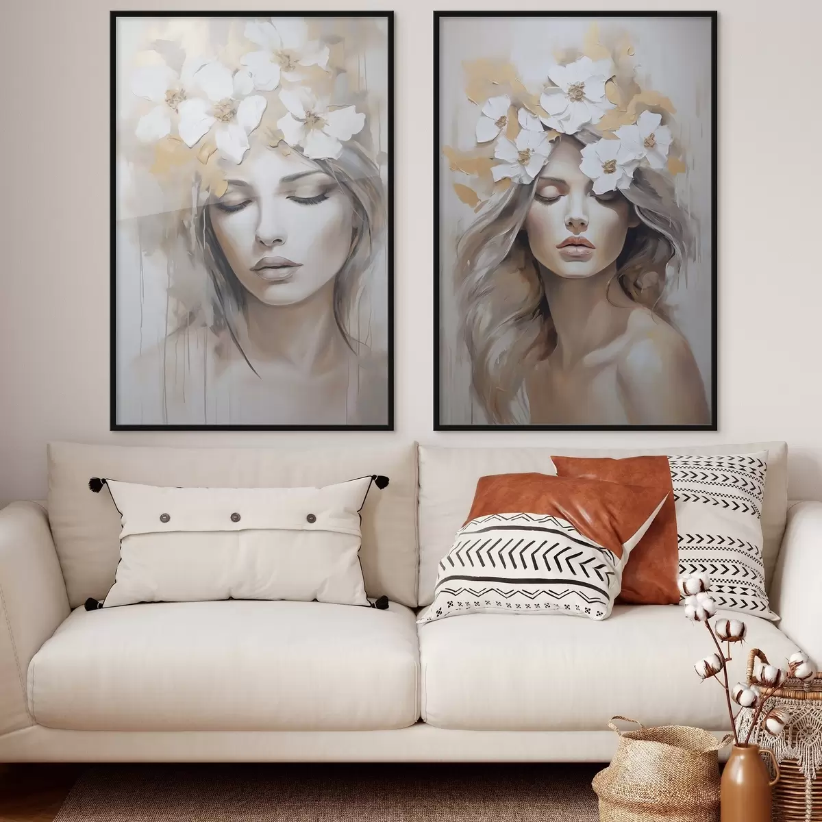 Poster Ritratto astratto di una ragazza con fiori, imitazione di un dipinto d01034