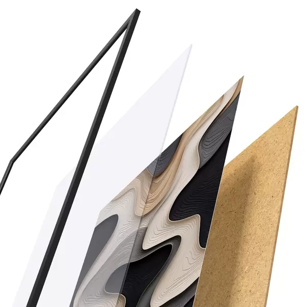 Il poster è composto da cornice, plexiglass, immagine stampata e supporto in truciolato. Il poster può essere immediatamente appeso alla parete grazie ai supporti sul retro.