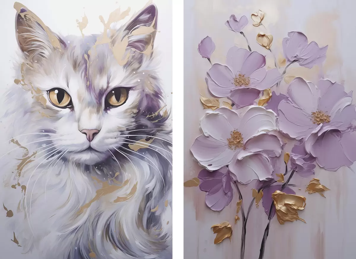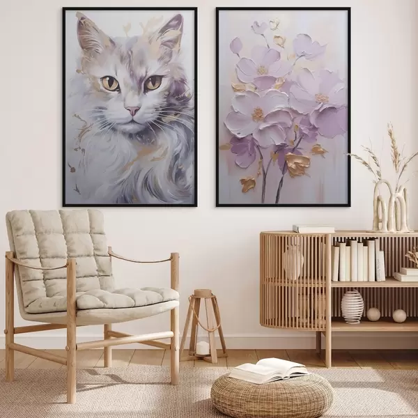 Poster Fiori astratti e un gatto Nr d01056