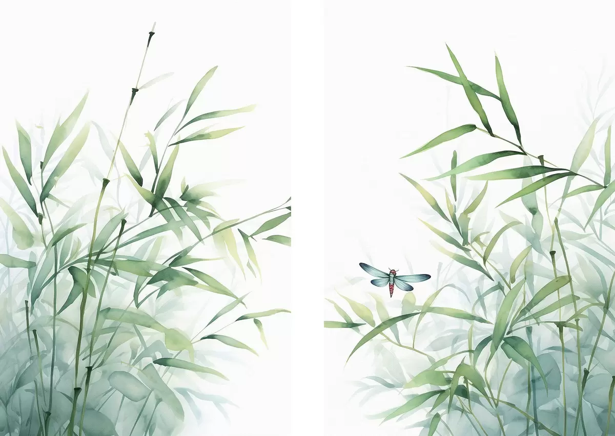 Poster Piante di bambù, imitazione acquerello Nr d01062