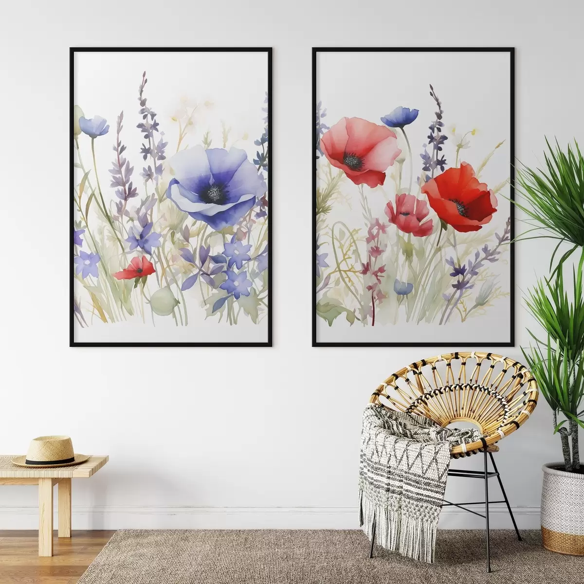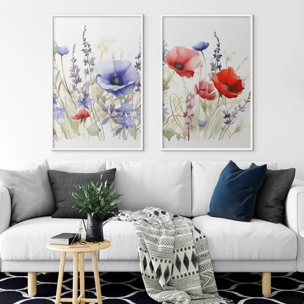 Poster Papaveri in un campo, effetto acquerello d01067