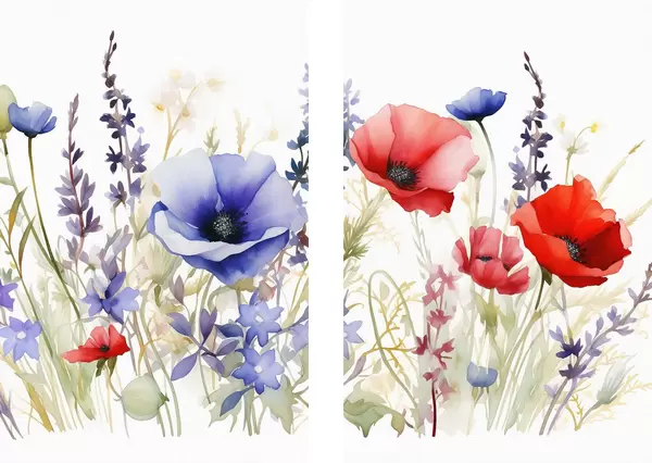 Poster Papaveri in un campo, effetto acquerello Nr d01067