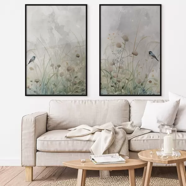 Poster Uccelli su uno sfondo di fiori selvatici Nr d01068
