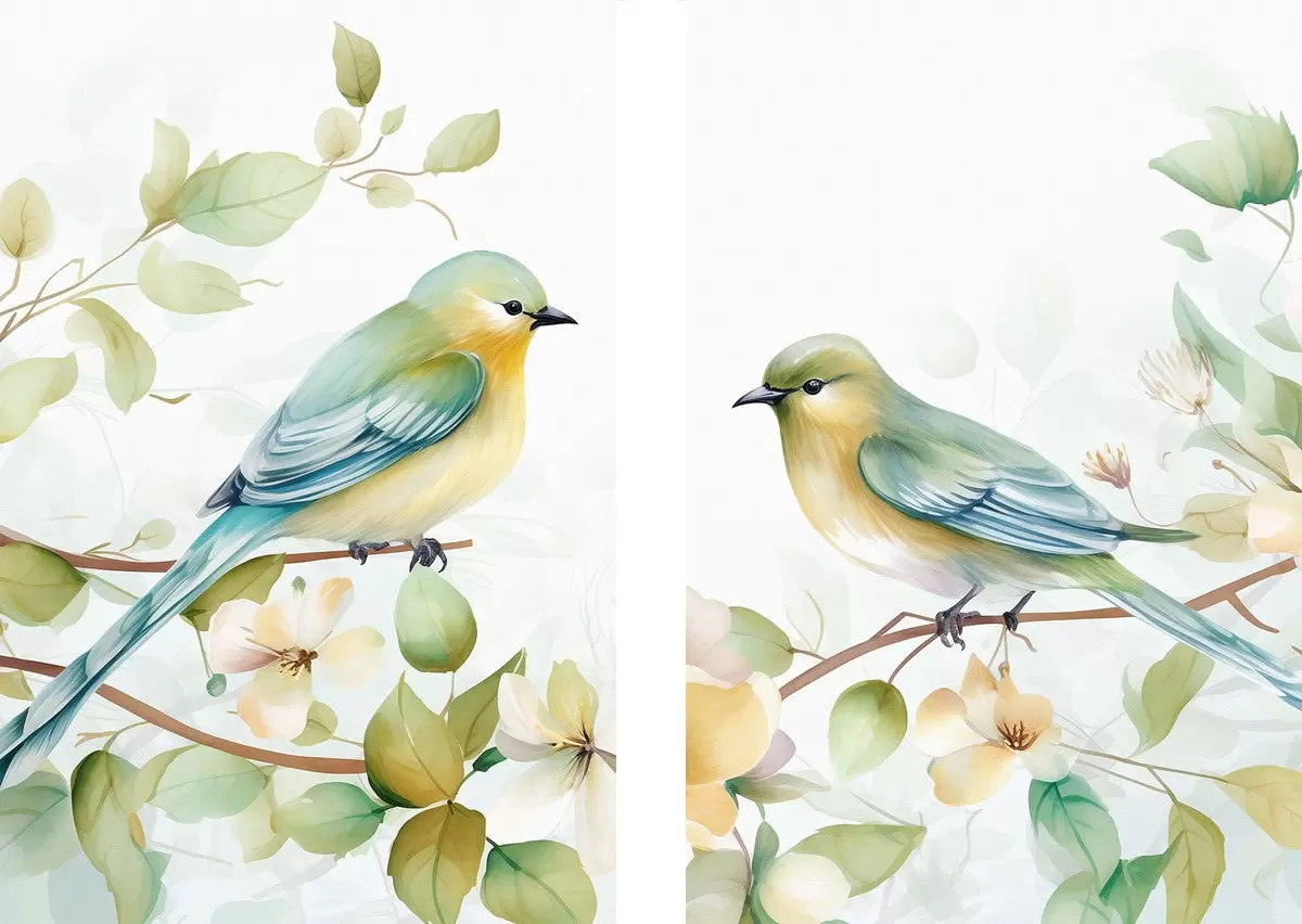 Poster Due cinciallegre sui rami di gelsomino Nr d01069