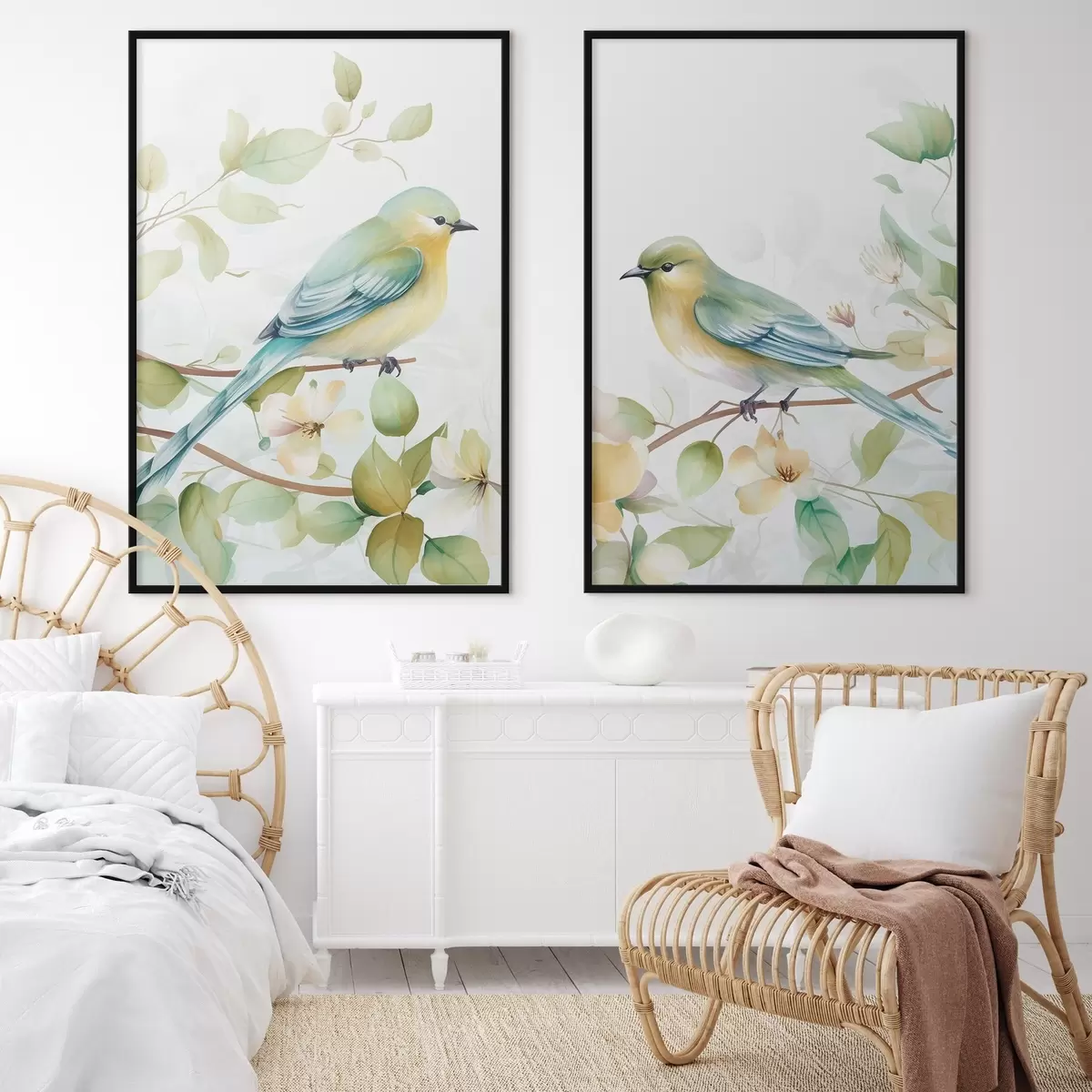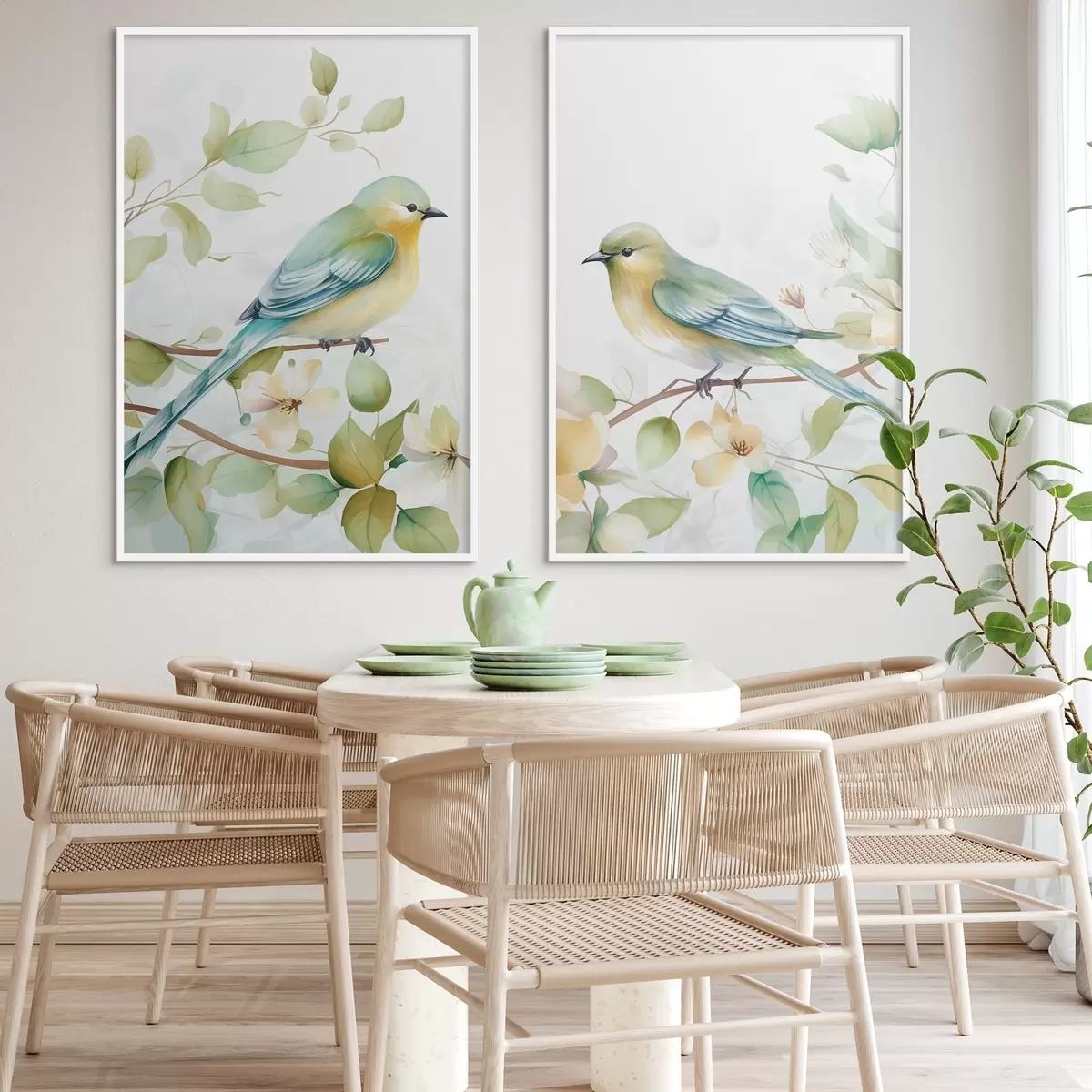 Poster Due cinciallegre sui rami di gelsomino d01069