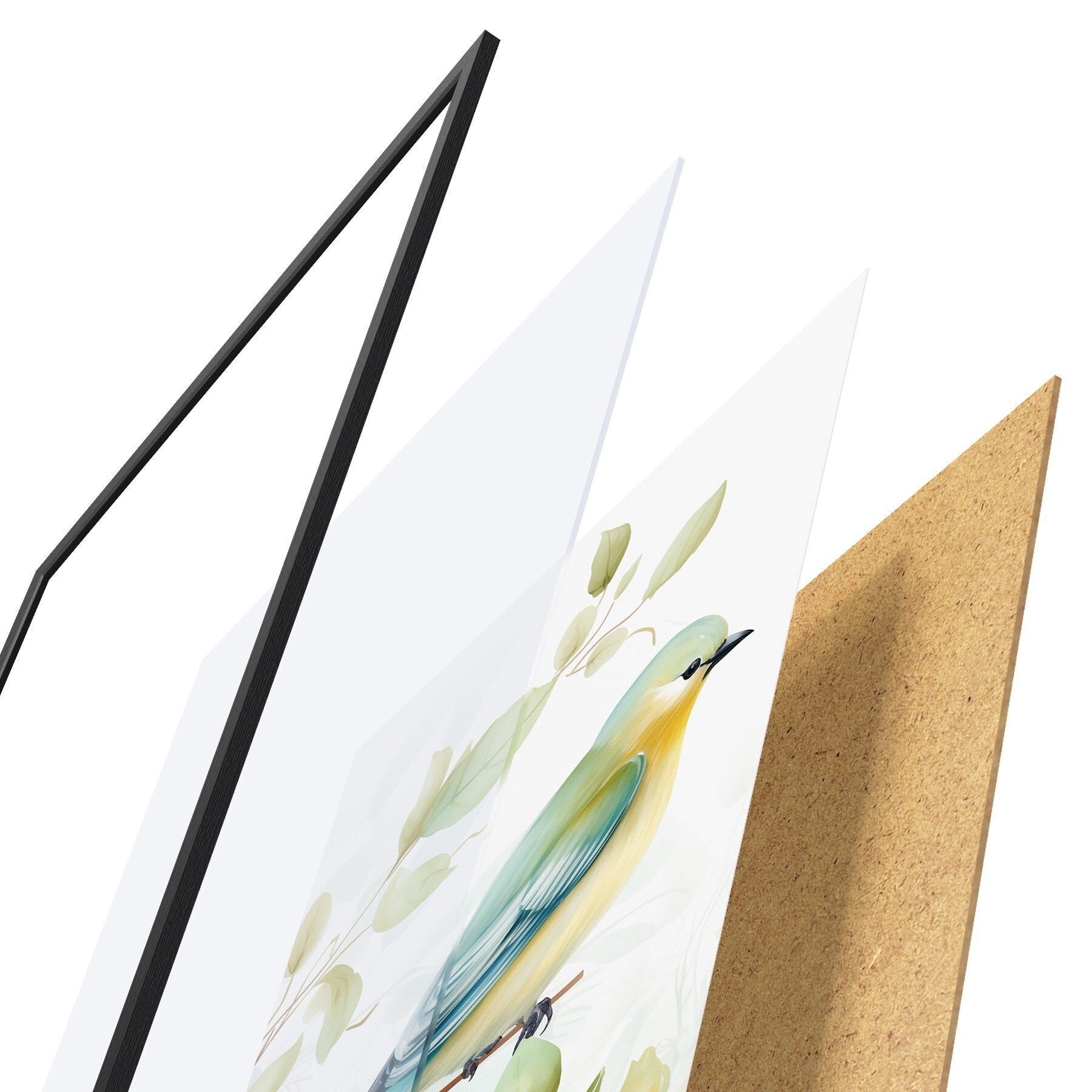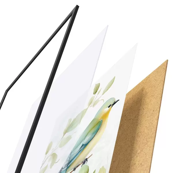 Il poster è composto da cornice, plexiglass, immagine stampata e supporto in truciolato. Il poster può essere immediatamente appeso alla parete grazie ai supporti sul retro.