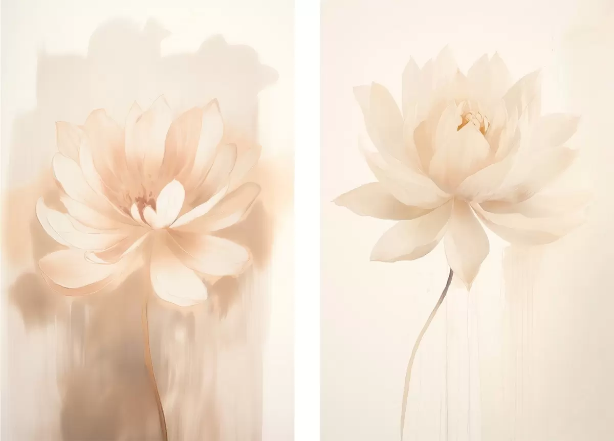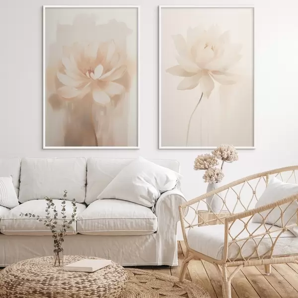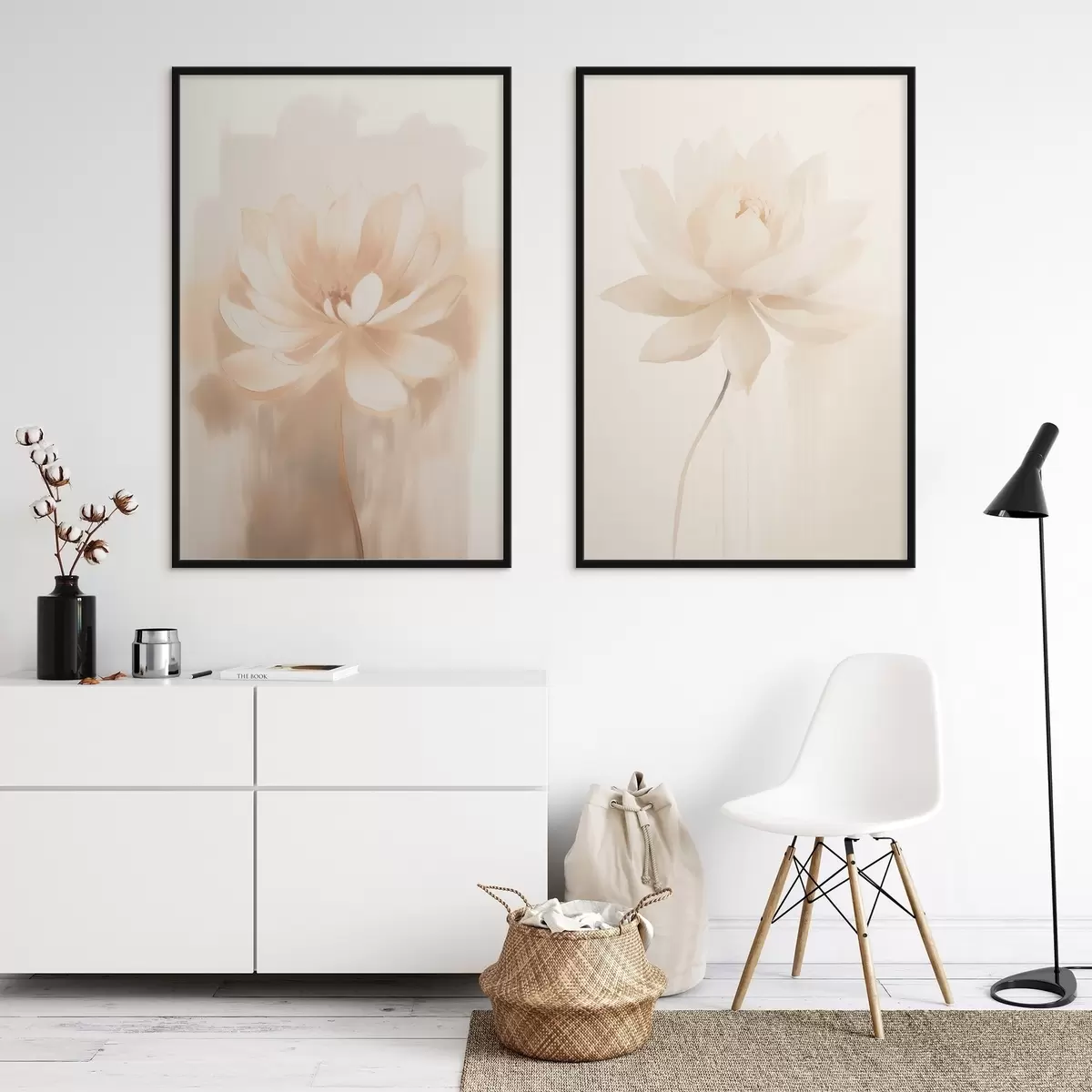 Poster Composizione floreale nei toni caldi del beige con pennellate leggere e sfondo arioso Nr d01087