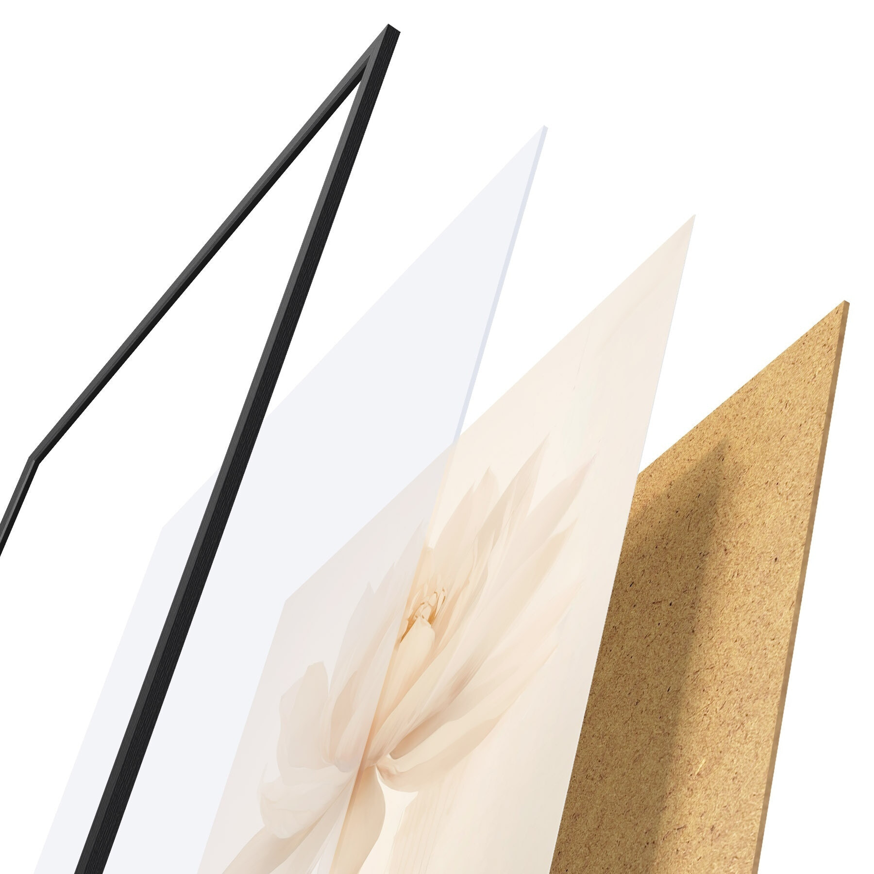 Il poster è composto da cornice, plexiglass, immagine stampata e supporto in truciolato. Il poster può essere immediatamente appeso alla parete grazie ai supporti sul retro.