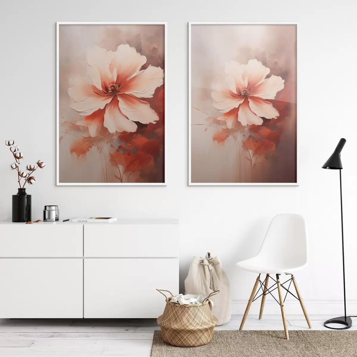 Poster Composizione floreale: petali bianchi e crema, accenti corallo e un morbido sfondo nebbioso Nr d01088