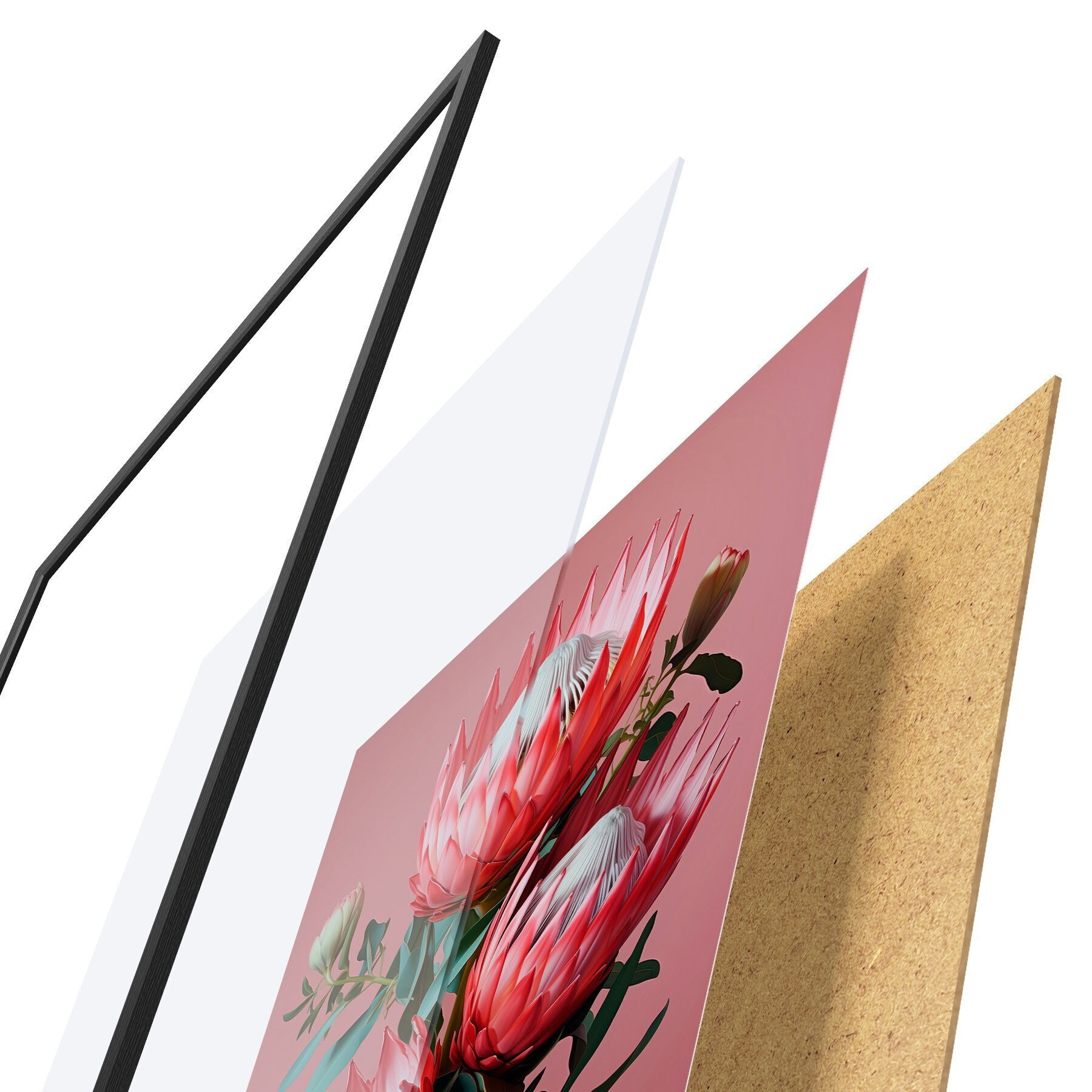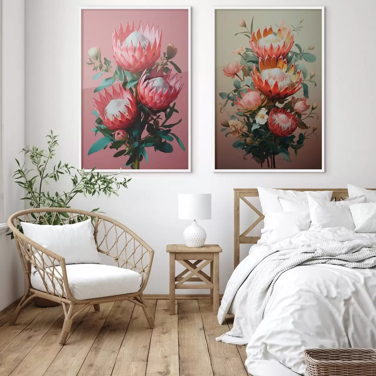 Poster Proteas in due atmosfere: sfondo rosa intenso e una calda sfumatura oliva d01092