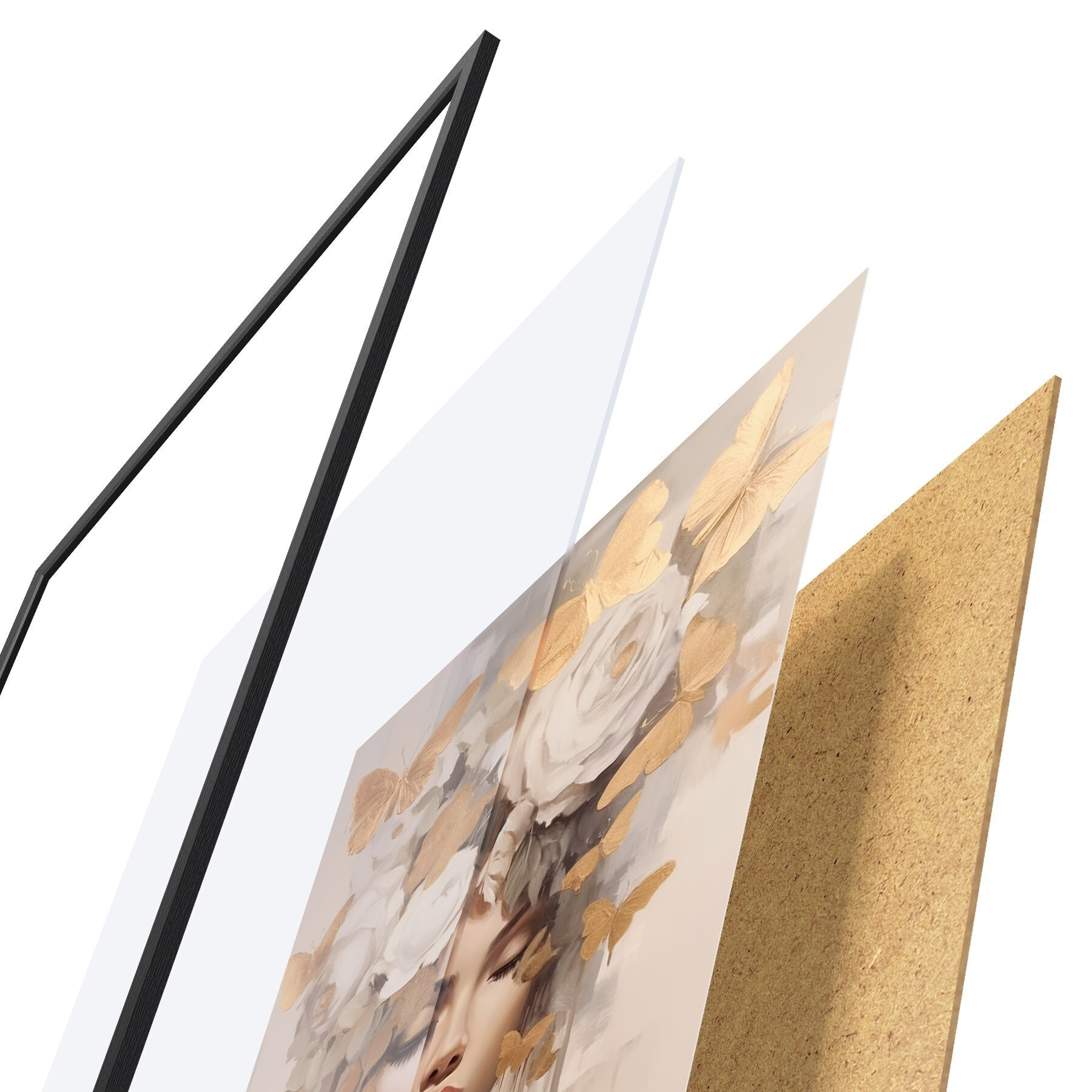 Il poster è composto da cornice, plexiglass, immagine stampata e supporto in truciolato. Il poster può essere immediatamente appeso alla parete grazie ai supporti sul retro.