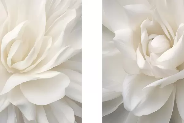 Poster Fiore bianco astratto con petali delicati e stratificati, arte minimalista Nr d01120