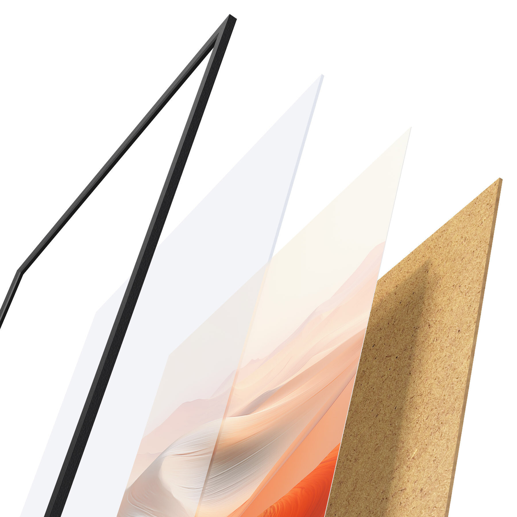 Il poster è composto da cornice, plexiglass, immagine stampata e supporto in truciolato. Il poster può essere immediatamente appeso alla parete grazie ai supporti sul retro.