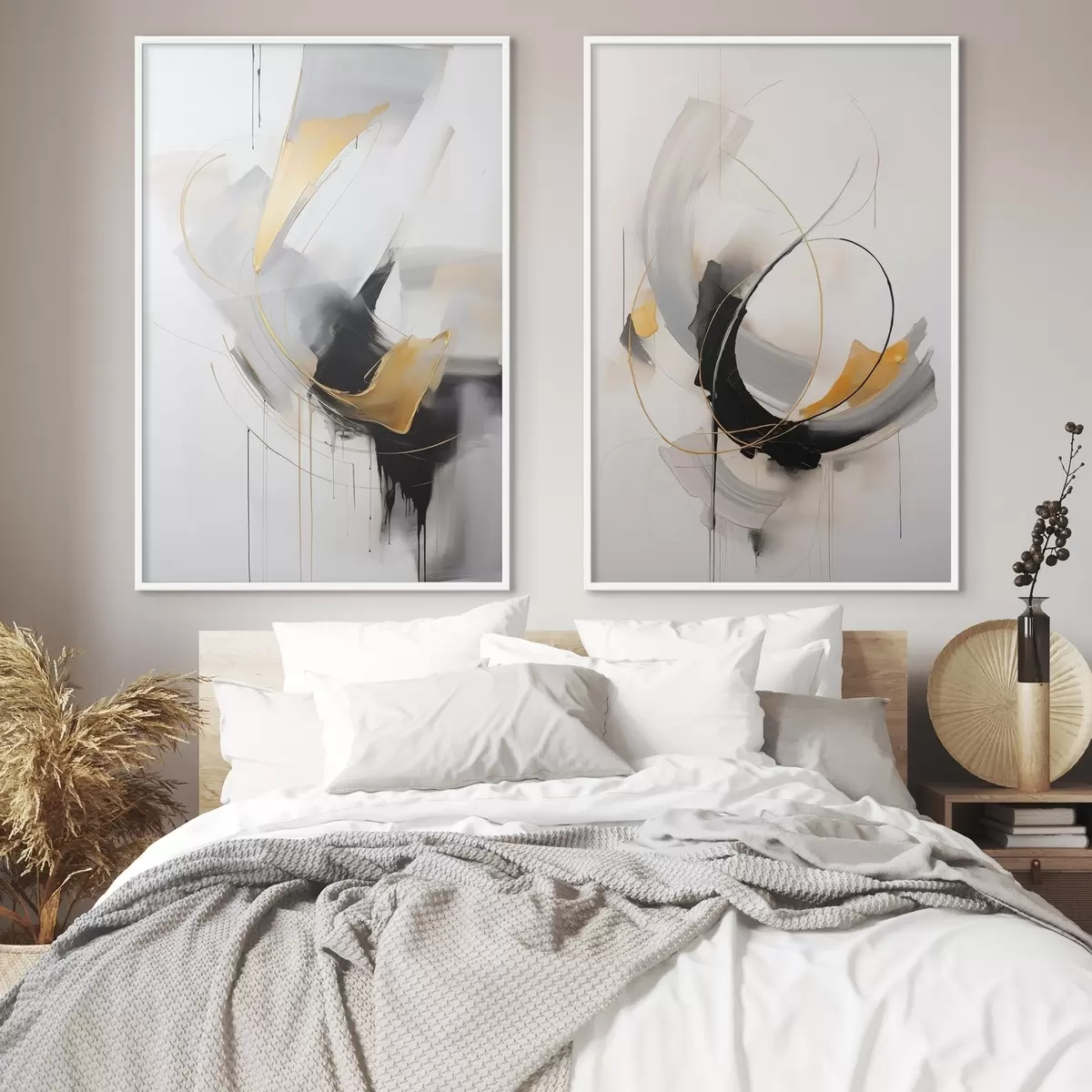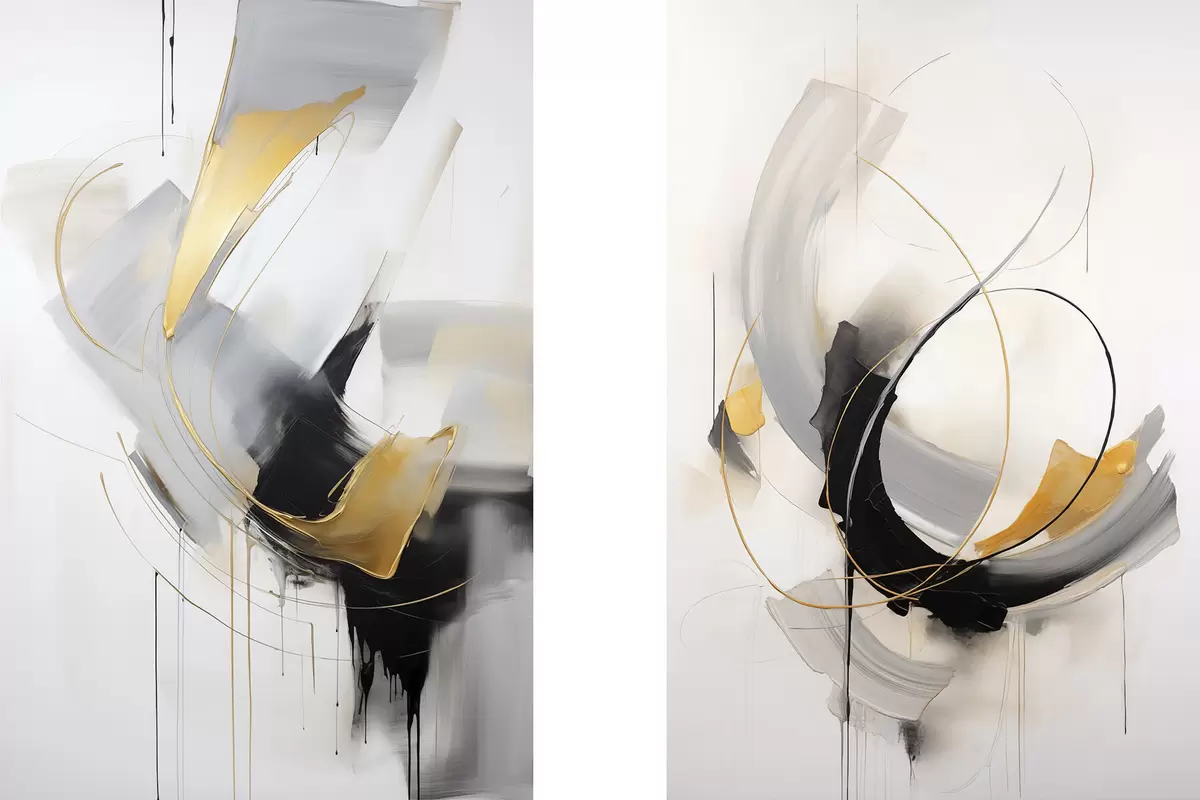 Poster Pittura astratta con pennellate gialle, nere e bianche, linee dinamiche Nr d01125