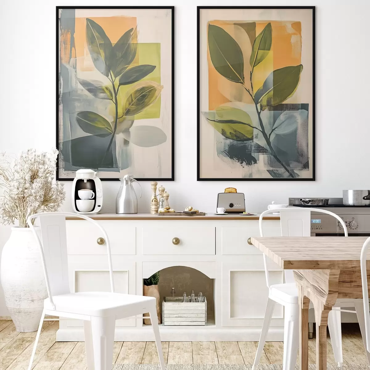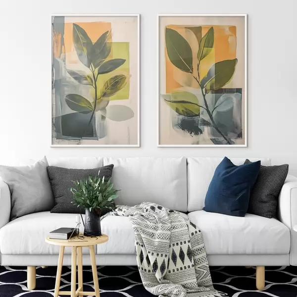 Poster Rami con foglie su sfondo astratto d01132
