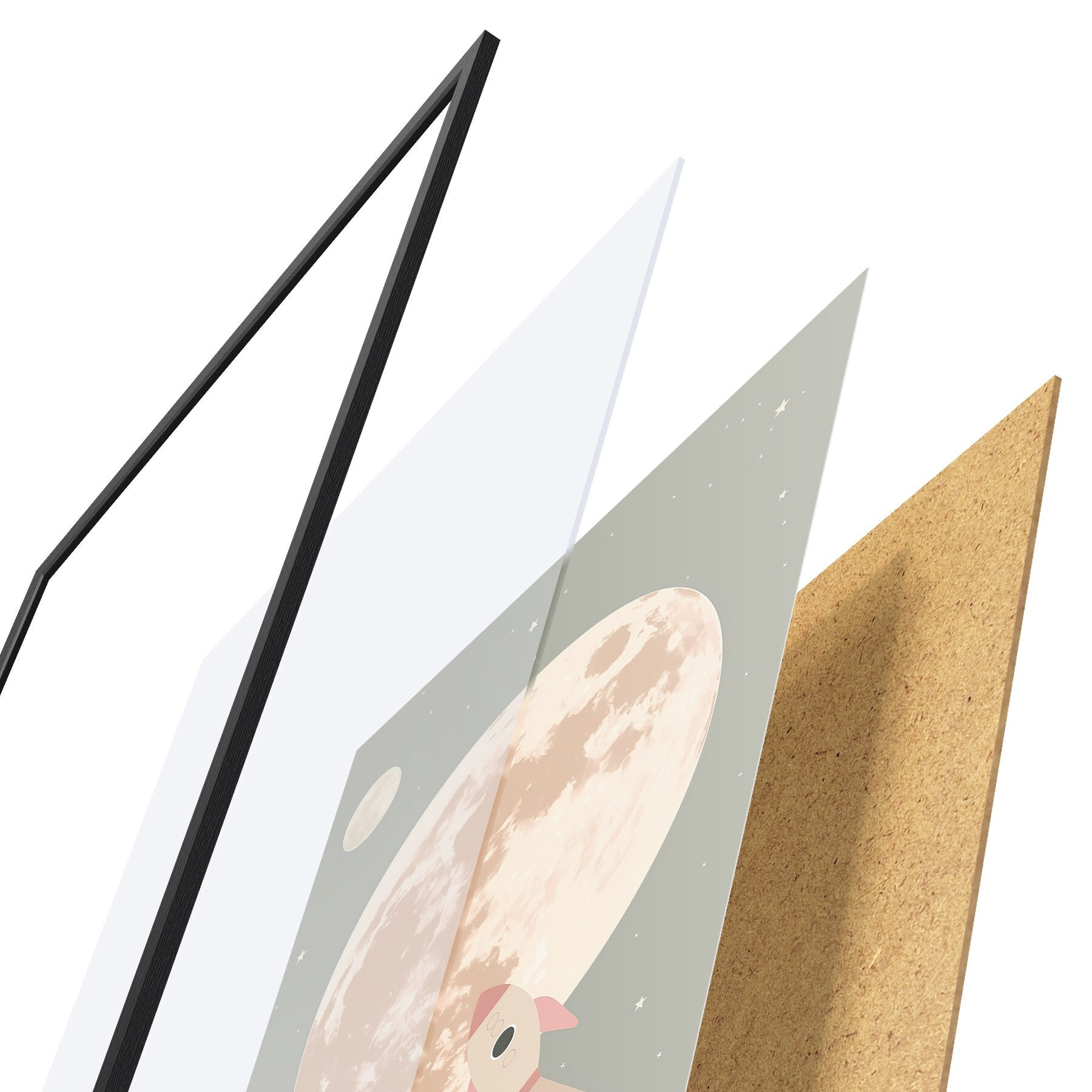Il poster è composto da cornice, plexiglass, immagine stampata e supporto in truciolato. Il poster può essere immediatamente appeso alla parete grazie ai supporti sul retro.