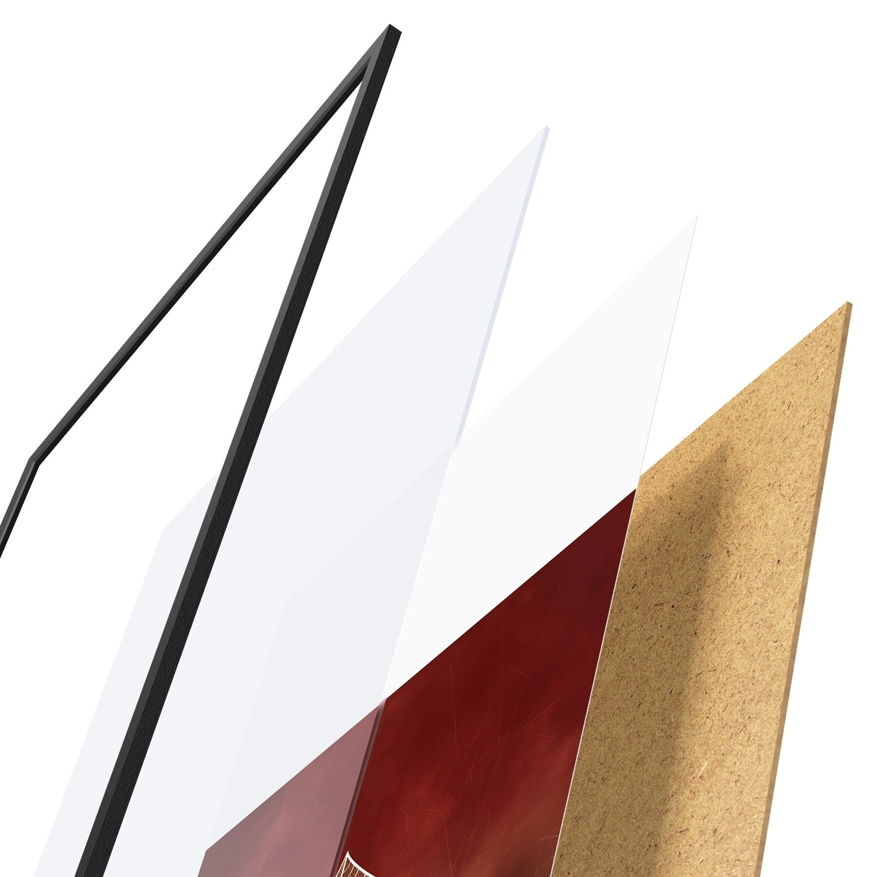 Il poster è composto da cornice, plexiglass, immagine stampata e supporto in truciolato. Il poster può essere immediatamente appeso alla parete grazie ai supporti sul retro.