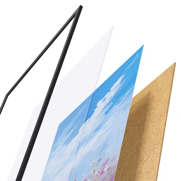 Il poster è composto da cornice, plexiglass, immagine stampata e supporto in truciolato. Il poster può essere immediatamente appeso alla parete grazie ai supporti sul retro.