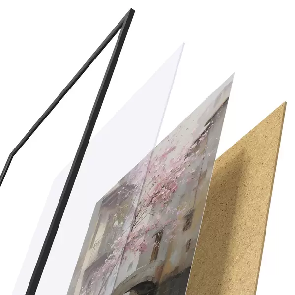 Il poster è composto da cornice, plexiglass, immagine stampata e supporto in truciolato. Il poster può essere immediatamente appeso alla parete grazie ai supporti sul retro.