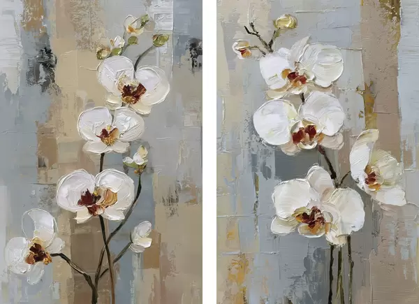 Poster fiori di orchidea bianca in stile pittura a olio Nr d01175