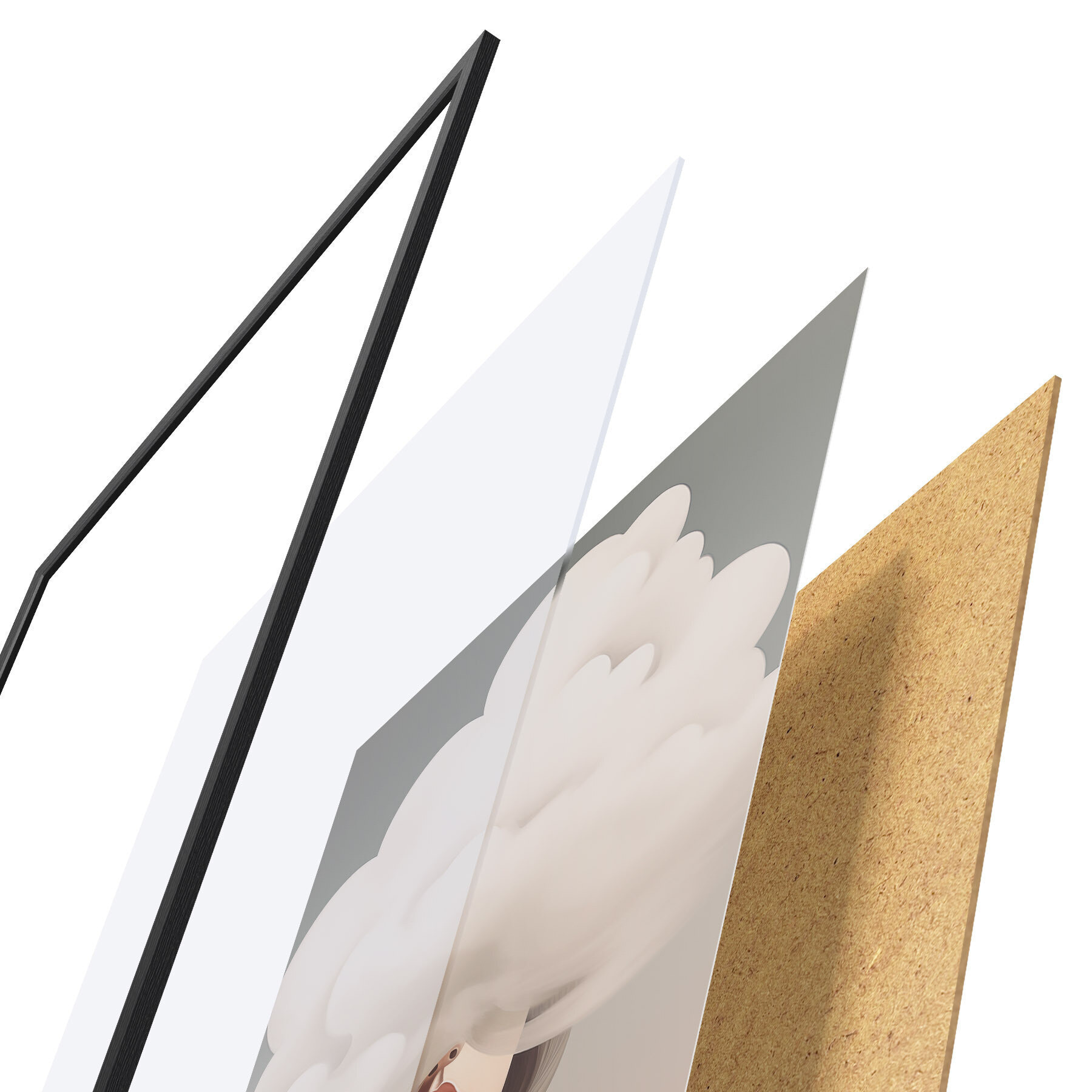 Il poster è composto da cornice, plexiglass, immagine stampata e supporto in truciolato. Il poster può essere immediatamente appeso alla parete grazie ai supporti sul retro.