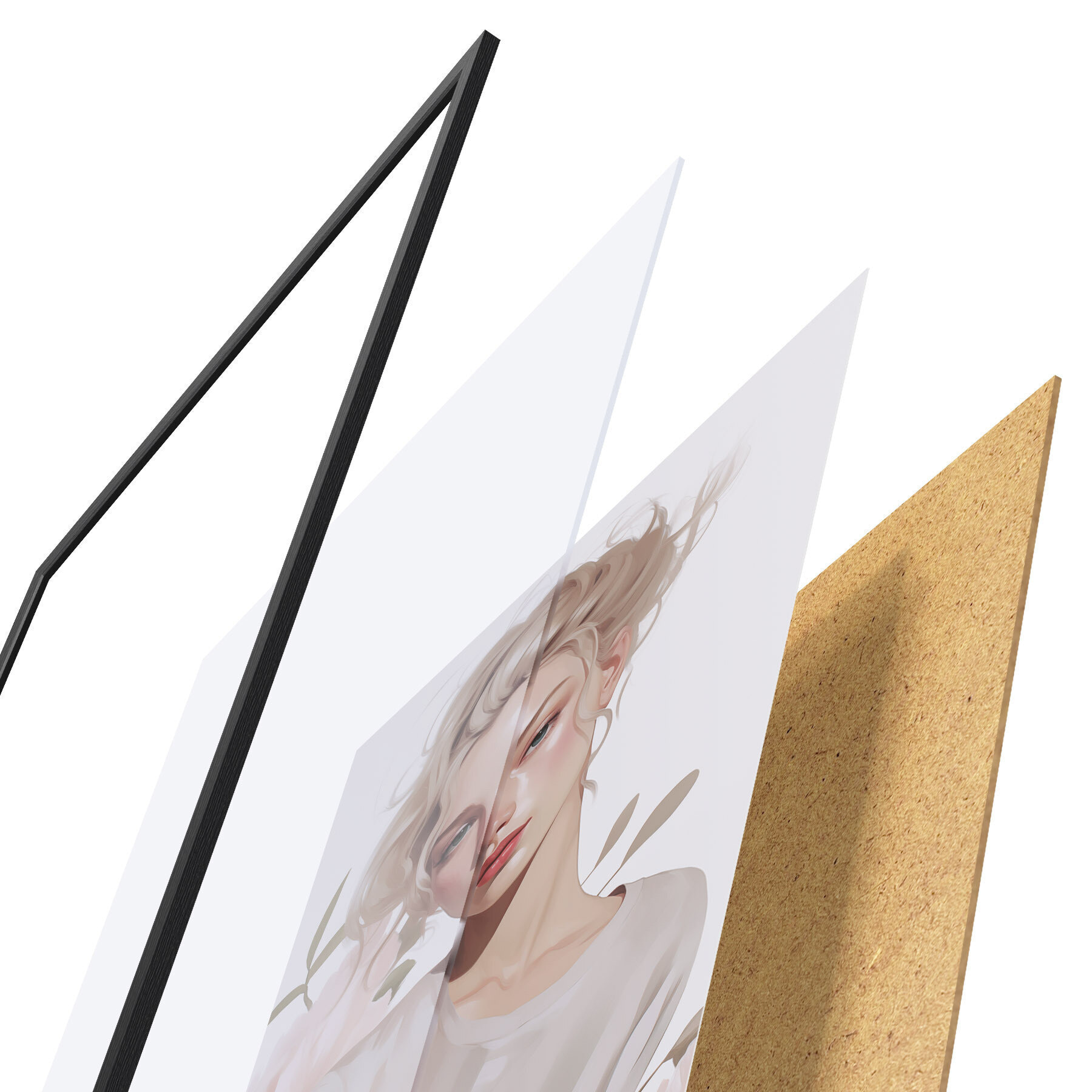 Il poster è composto da cornice, plexiglass, immagine stampata e supporto in truciolato. Il poster può essere immediatamente appeso alla parete grazie ai supporti sul retro.