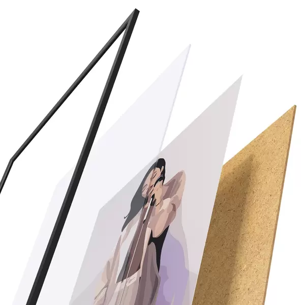 Il poster è composto da cornice, plexiglass, immagine stampata e supporto in truciolato. Il poster può essere immediatamente appeso alla parete grazie ai supporti sul retro.