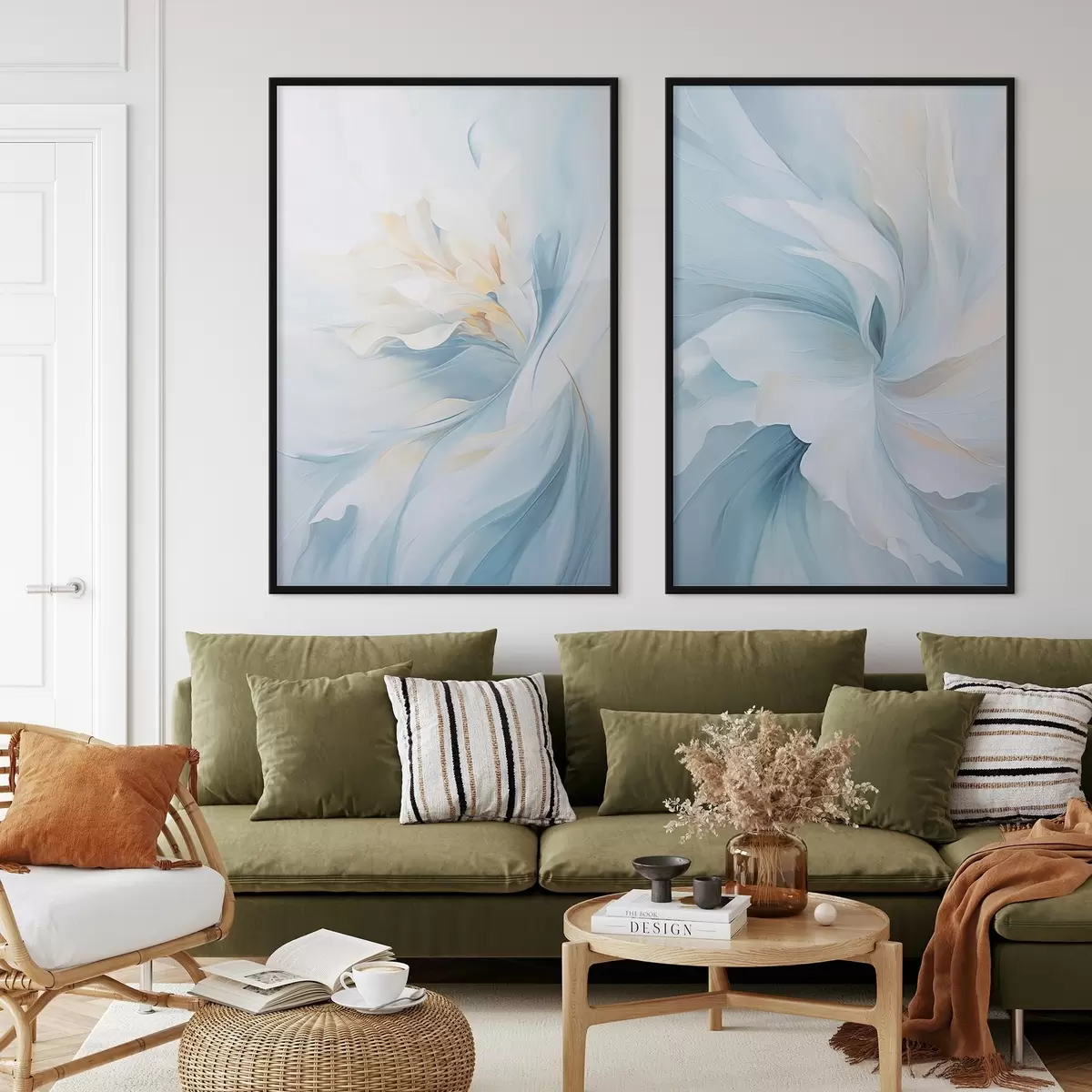 Poster Petali astratti delicati e traslucidi che volteggiano verso l'interno con luci soffuse e una texture pittorica. Nr d01244