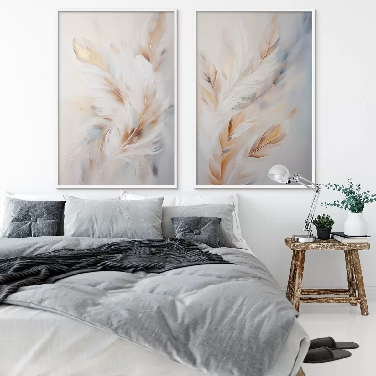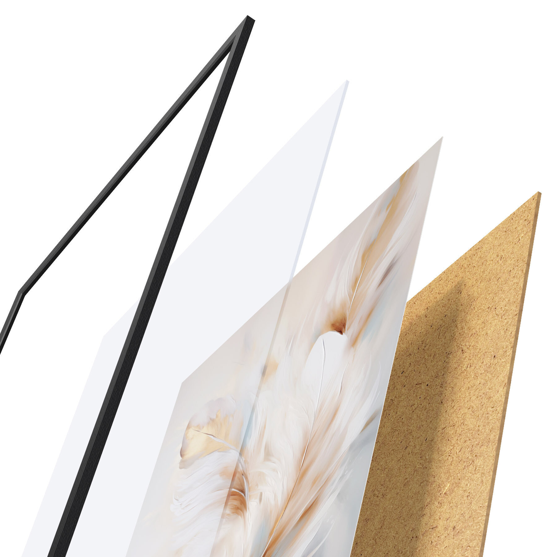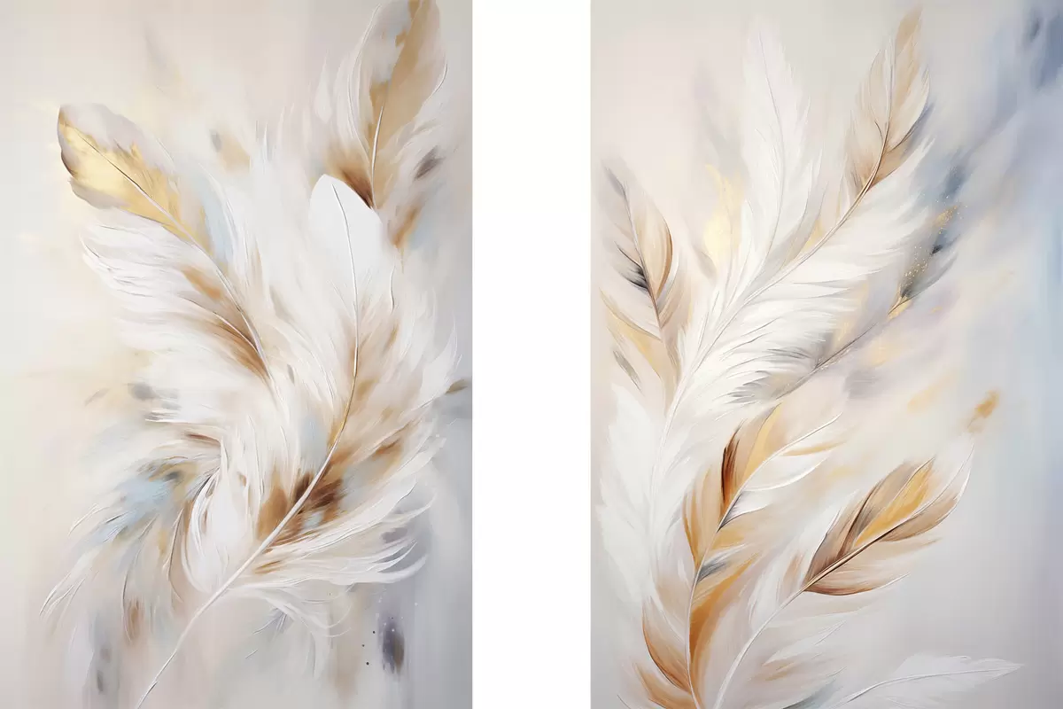 Poster Piume grandi e morbide con una miscela di tonalità bianche, gialle e marroni, su uno sfondo chiaro e astratto. d01247