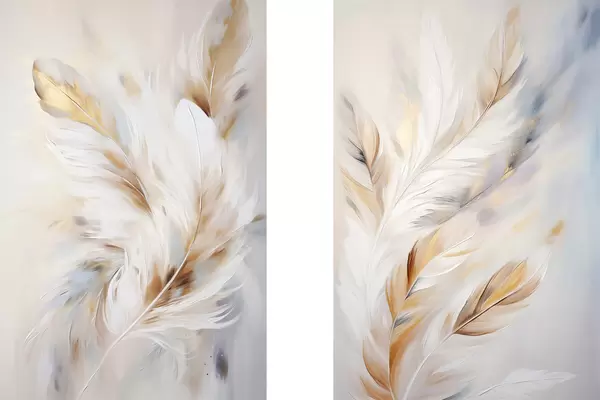 Poster Piume grandi e morbide con una miscela di tonalità bianche, gialle e marroni, su uno sfondo chiaro e astratto. d01247