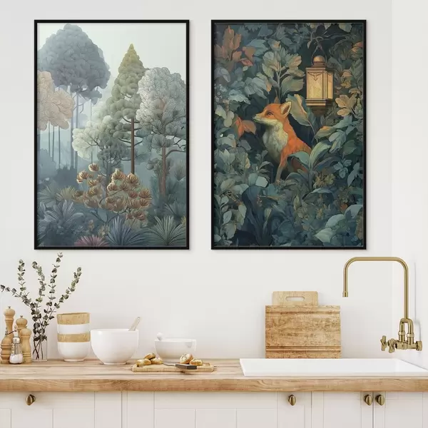 Poster Una graziosa volpe in una foresta fiabesca d01248