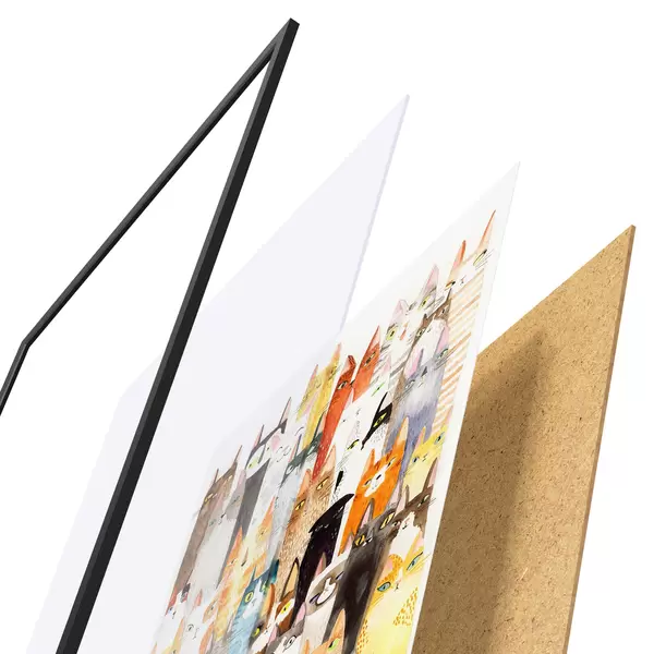 Il poster è composto da cornice, plexiglass, immagine stampata e supporto in truciolato. Il poster può essere immediatamente appeso alla parete grazie ai supporti sul retro.