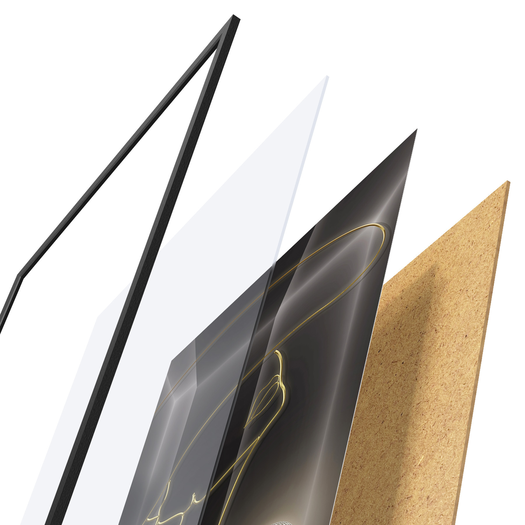 Il poster è composto da cornice, plexiglass, immagine stampata e supporto in truciolato. Il poster può essere immediatamente appeso alla parete grazie ai supporti sul retro.