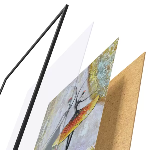 Il poster è composto da cornice, plexiglass, immagine stampata e supporto in truciolato. Il poster può essere immediatamente appeso alla parete grazie ai supporti sul retro.