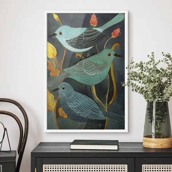 Poster Uccelli colorati in mezzo a un fogliame vivace Nr f03061