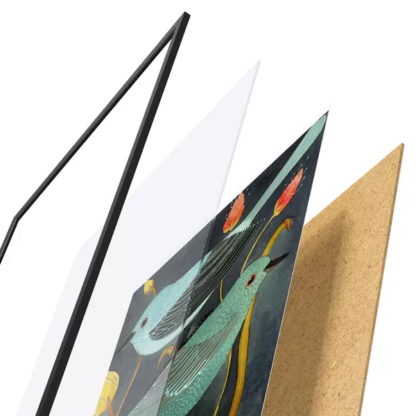 Il poster è composto da cornice, plexiglass, immagine stampata e supporto in truciolato. Il poster può essere immediatamente appeso alla parete grazie ai supporti sul retro.
