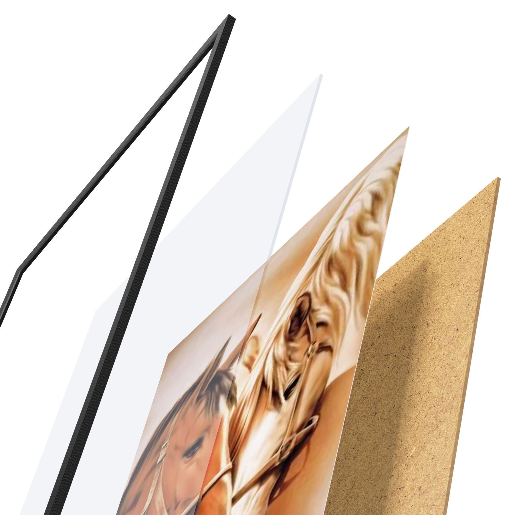 Il poster è composto da cornice, plexiglass, immagine stampata e supporto in truciolato. Il poster può essere immediatamente appeso alla parete grazie ai supporti sul retro.