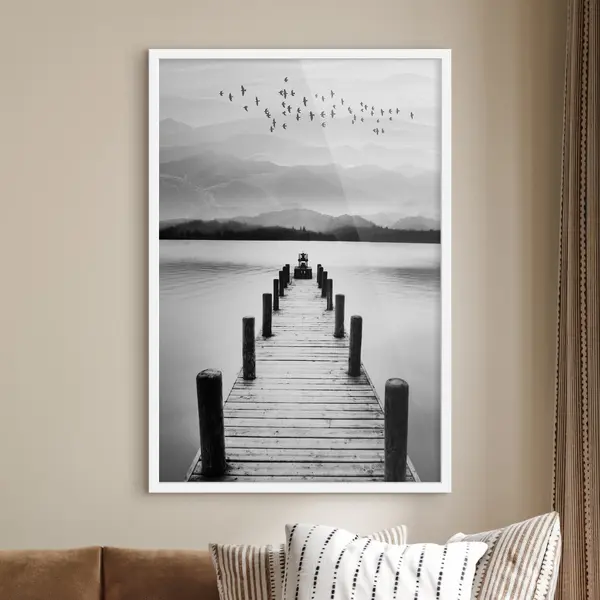 Poster Molo con vista sulle tranquille acque di montagna Nr f03914