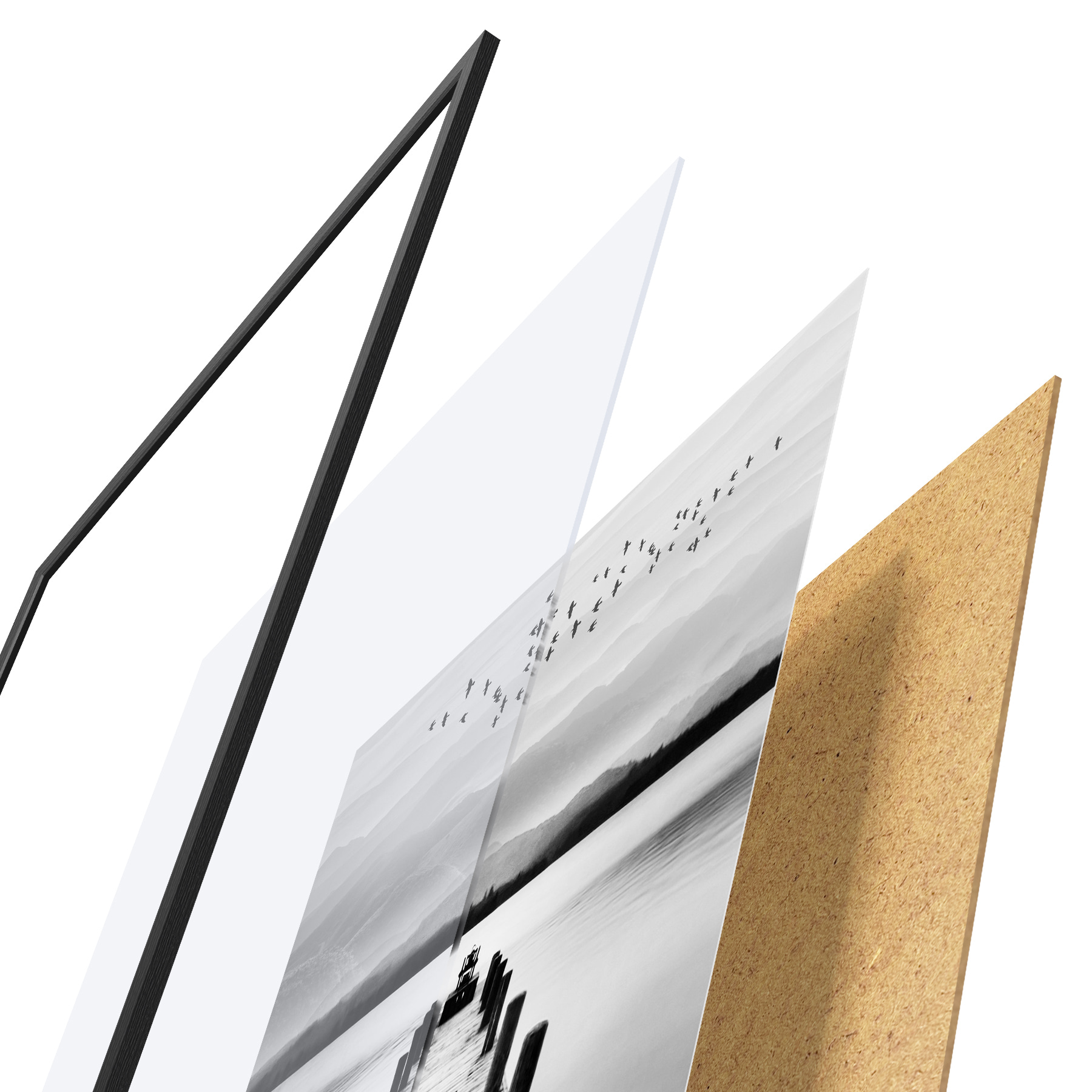 Il poster è composto da cornice, plexiglass, immagine stampata e supporto in truciolato. Il poster può essere immediatamente appeso alla parete grazie ai supporti sul retro.