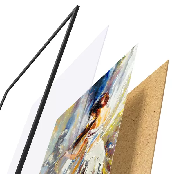 Il poster è composto da cornice, plexiglass, immagine stampata e supporto in truciolato. Il poster può essere immediatamente appeso alla parete grazie ai supporti sul retro.