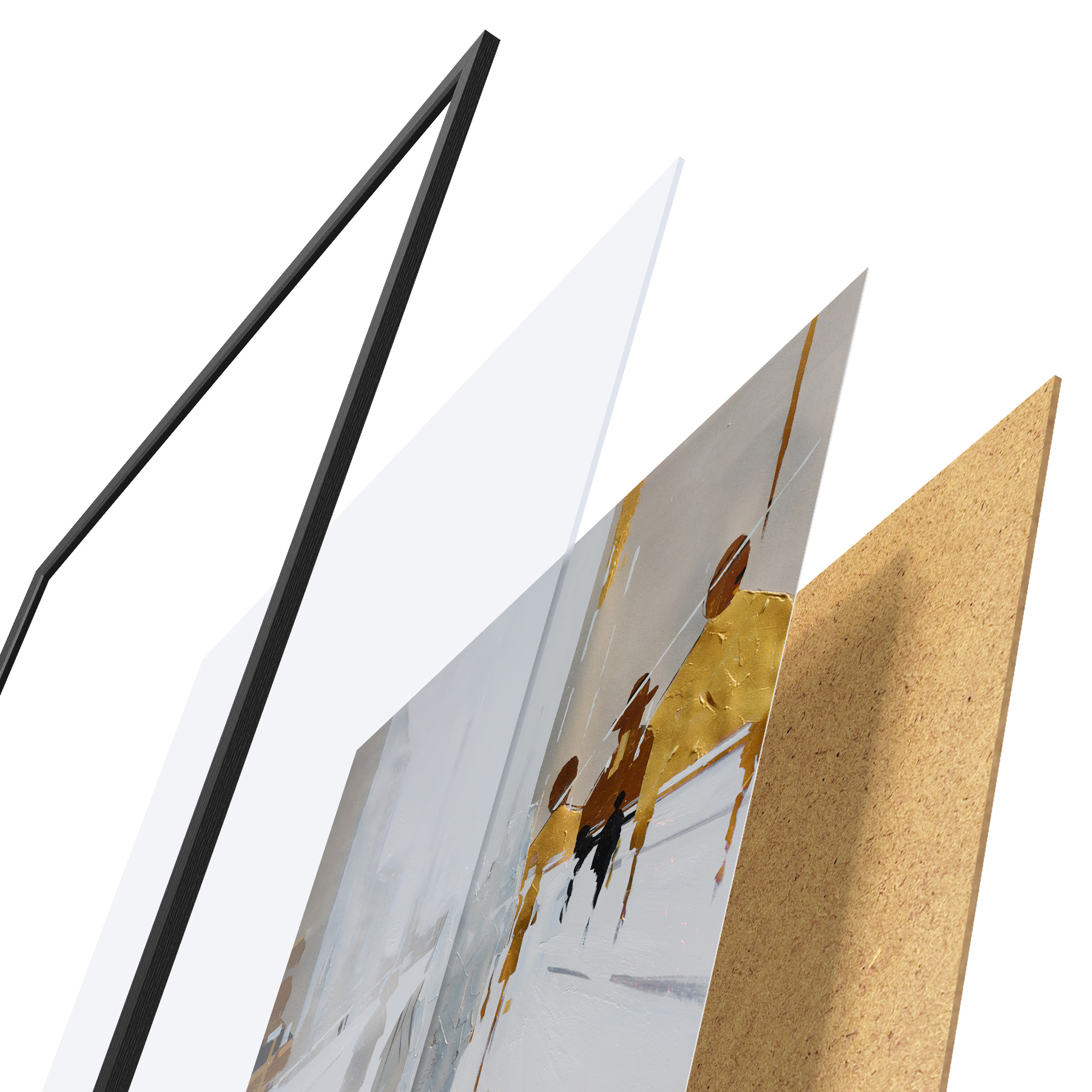Il poster è composto da cornice, plexiglass, immagine stampata e supporto in truciolato. Il poster può essere immediatamente appeso alla parete grazie ai supporti sul retro.
