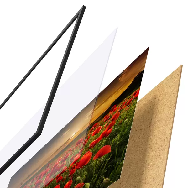 Il poster è composto da cornice, plexiglass, immagine stampata e supporto in truciolato. Il poster può essere immediatamente appeso alla parete grazie ai supporti sul retro.