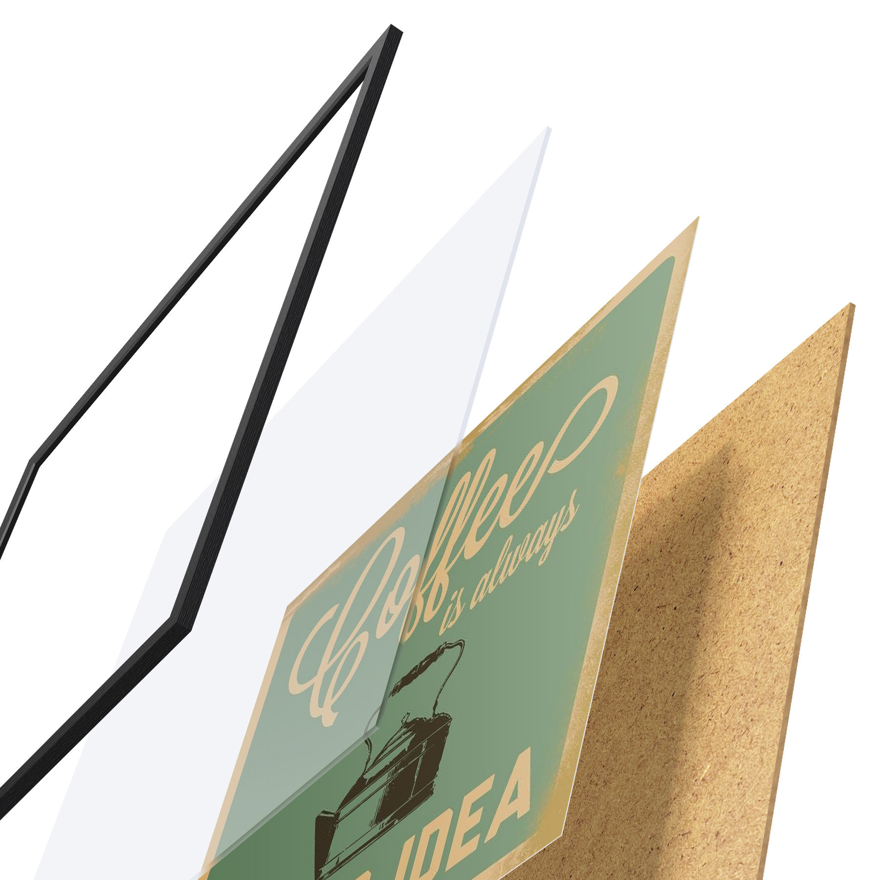 Il poster è composto da cornice, plexiglass, immagine stampata e supporto in truciolato. Il poster può essere immediatamente appeso alla parete grazie ai supporti sul retro.