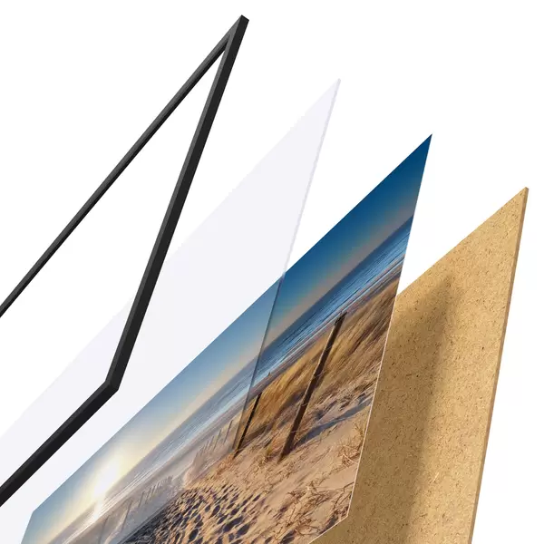 Il poster è composto da cornice, plexiglass, immagine stampata e supporto in truciolato. Il poster può essere immediatamente appeso alla parete grazie ai supporti sul retro.