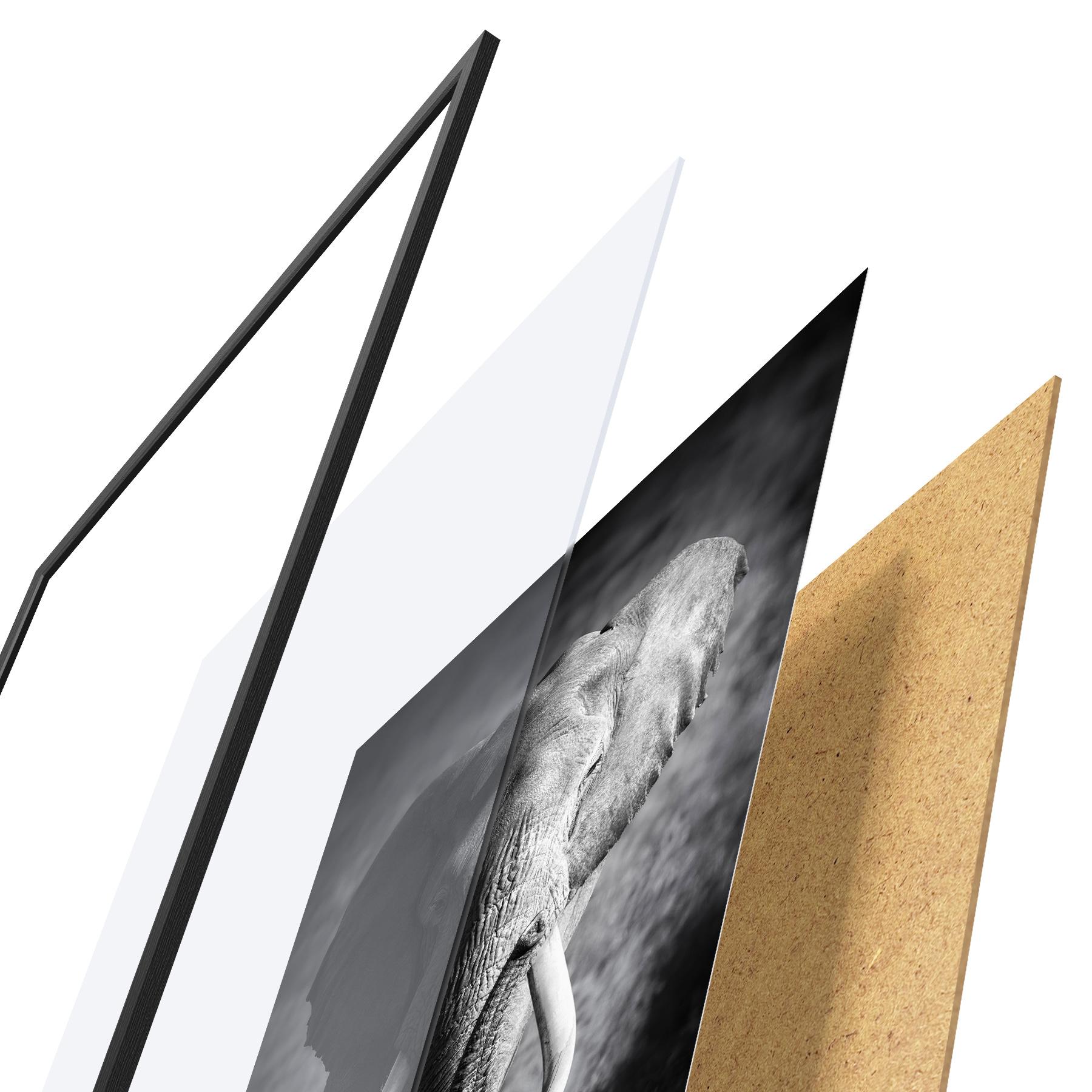 Il poster è composto da cornice, plexiglass, immagine stampata e supporto in truciolato. Il poster può essere immediatamente appeso alla parete grazie ai supporti sul retro.