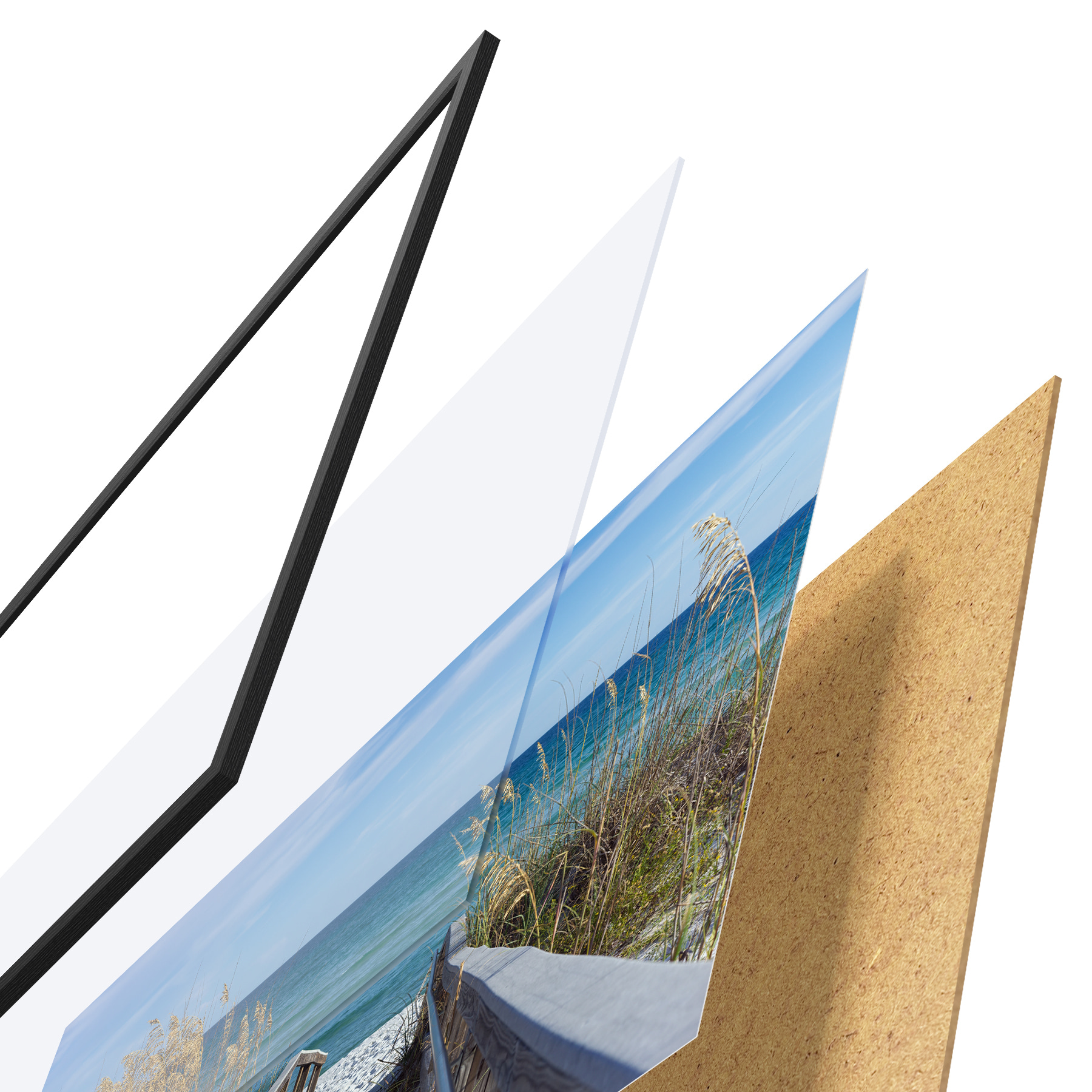 Il poster è composto da cornice, plexiglass, immagine stampata e supporto in truciolato. Il poster può essere immediatamente appeso alla parete grazie ai supporti sul retro.