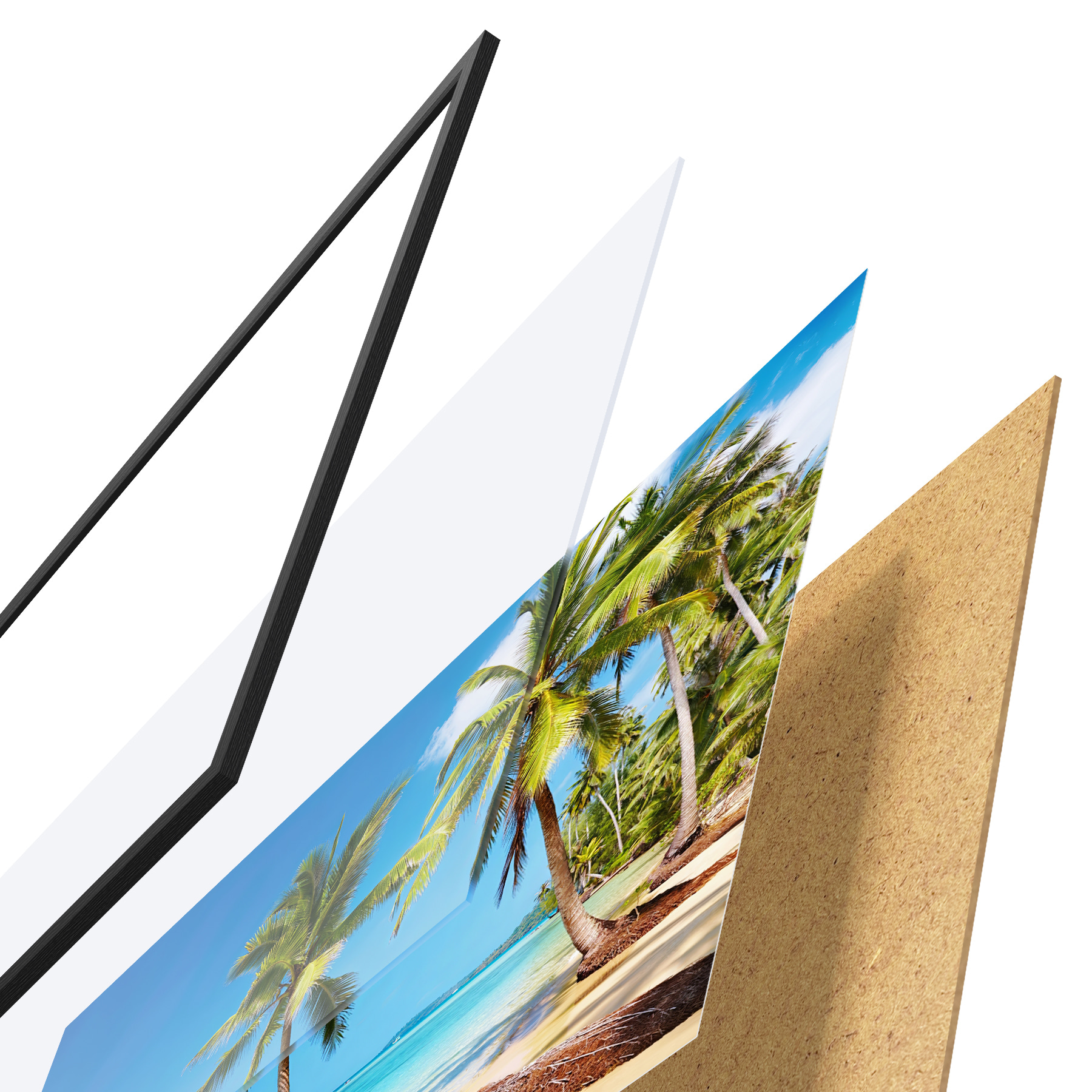 Il poster è composto da cornice, plexiglass, immagine stampata e supporto in truciolato. Il poster può essere immediatamente appeso alla parete grazie ai supporti sul retro.