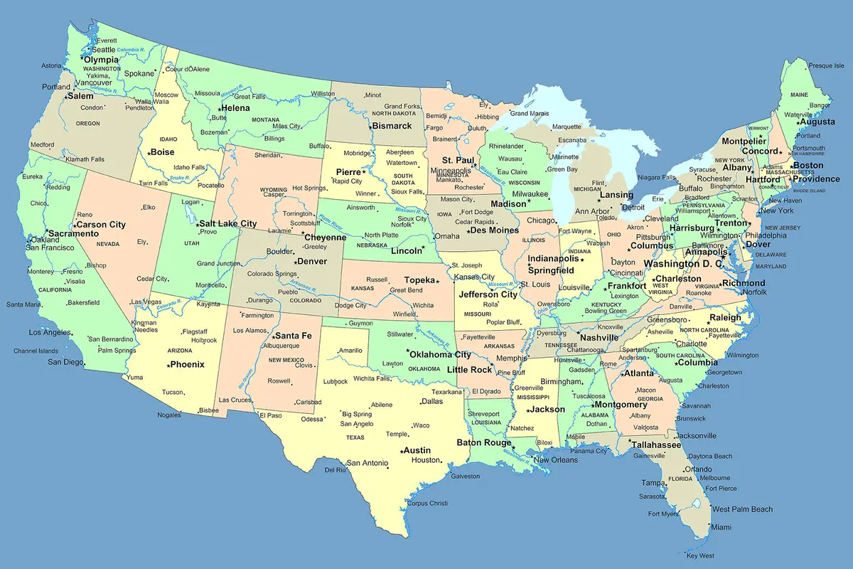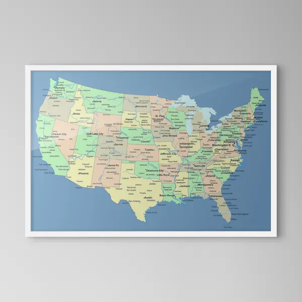 Poster Mappa degli Stati Uniti visualizzata f09911