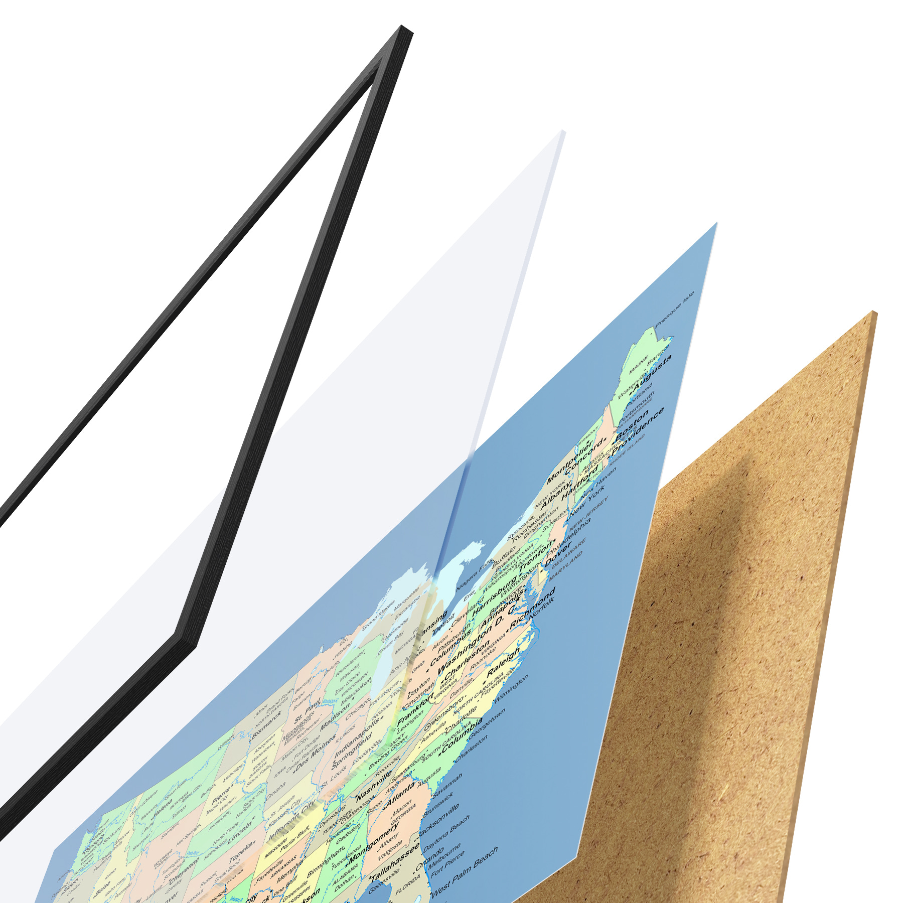 Il poster è composto da cornice, plexiglass, immagine stampata e supporto in truciolato. Il poster può essere immediatamente appeso alla parete grazie ai supporti sul retro.