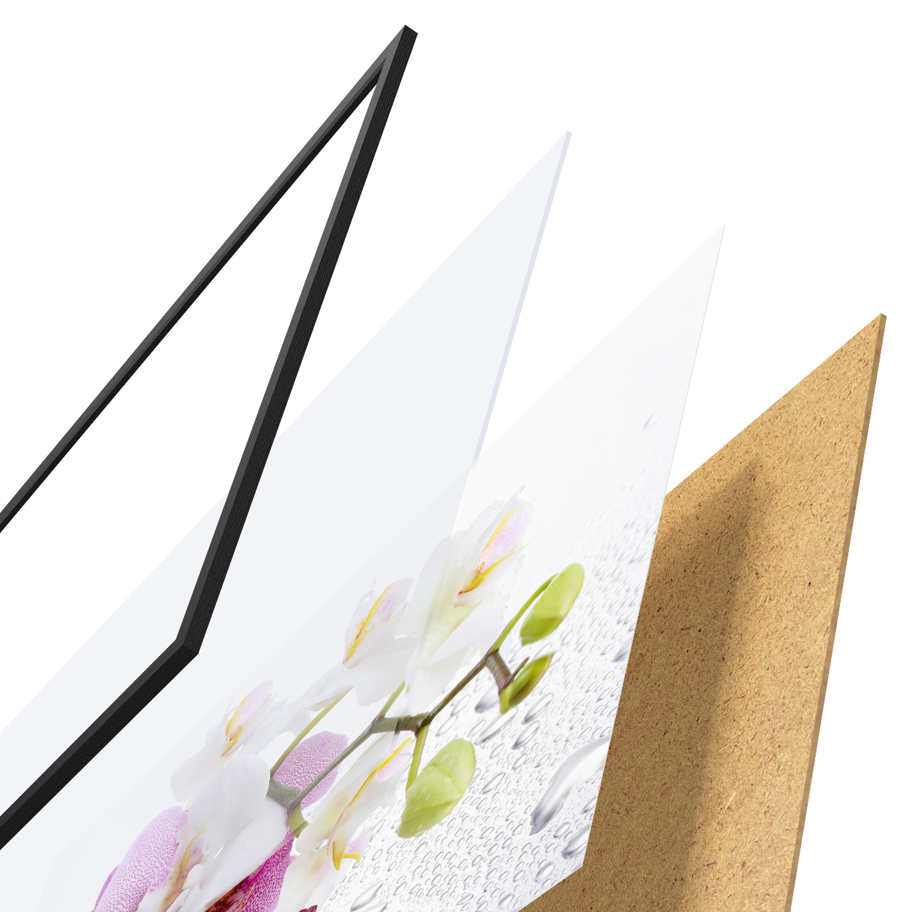 Il poster è composto da cornice, plexiglass, immagine stampata e supporto in truciolato. Il poster può essere immediatamente appeso alla parete grazie ai supporti sul retro.